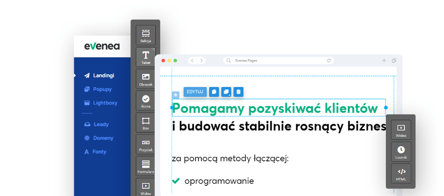 "Kompleksowe narzędzie Evenea Premium pozwoliło mi na przeniesienie swojego biznesu do online. Dostarcza ono nie tylko miejsce do tworzenia i prowadzenia webinarów oraz szkoleń, ale także możliwość samodzielnego tworzenia stron lądowania, dzięki czemu nie muszę już poświęcać budżetów na informatyków, którzy taką stronę mi stworzą.